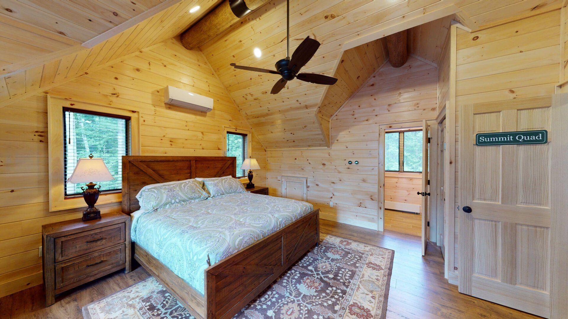 - Bedroom #1 "Summit Quad" with King Bed and a Day Bed. En-suite bath has a walk-in shower and a heated towel rack